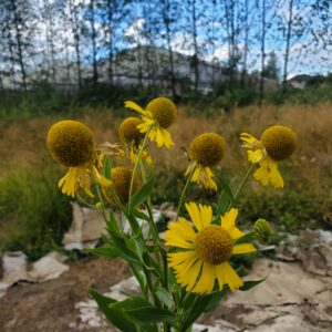 Side note- this photo is of Mountain Sneezeweed (Helenium autumnale), a great native plant for pollinators and does best in seasonally wet areas!  Doesn't actually make you sneeze either.  Apparently "the common name is based off the former use of the dried leaves in making snuff, inhaled to cause sneezing would supposedly rid the body of evil spirits". The more you know! 🌼🐝
