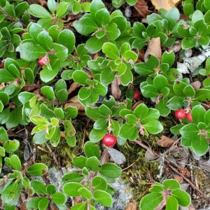 Low growing, semi-evergreen perennial ground cover with stunning white flowers, which later turn into clusters of red berries that are enjoyed by birds in the cooler months. Leaves also turn red during the winter.