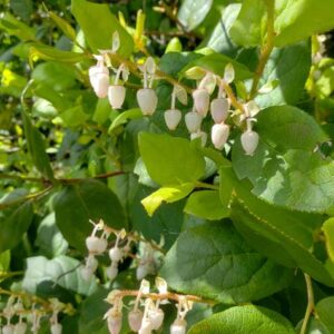 Short evergreen shrub with many great qualities. This plant is very beneficial and acts as food for bees, hummingbirds and butterflies as well as creates edible berries later in the summer. Slow growing initially, but once establish can grow and spread quickly.